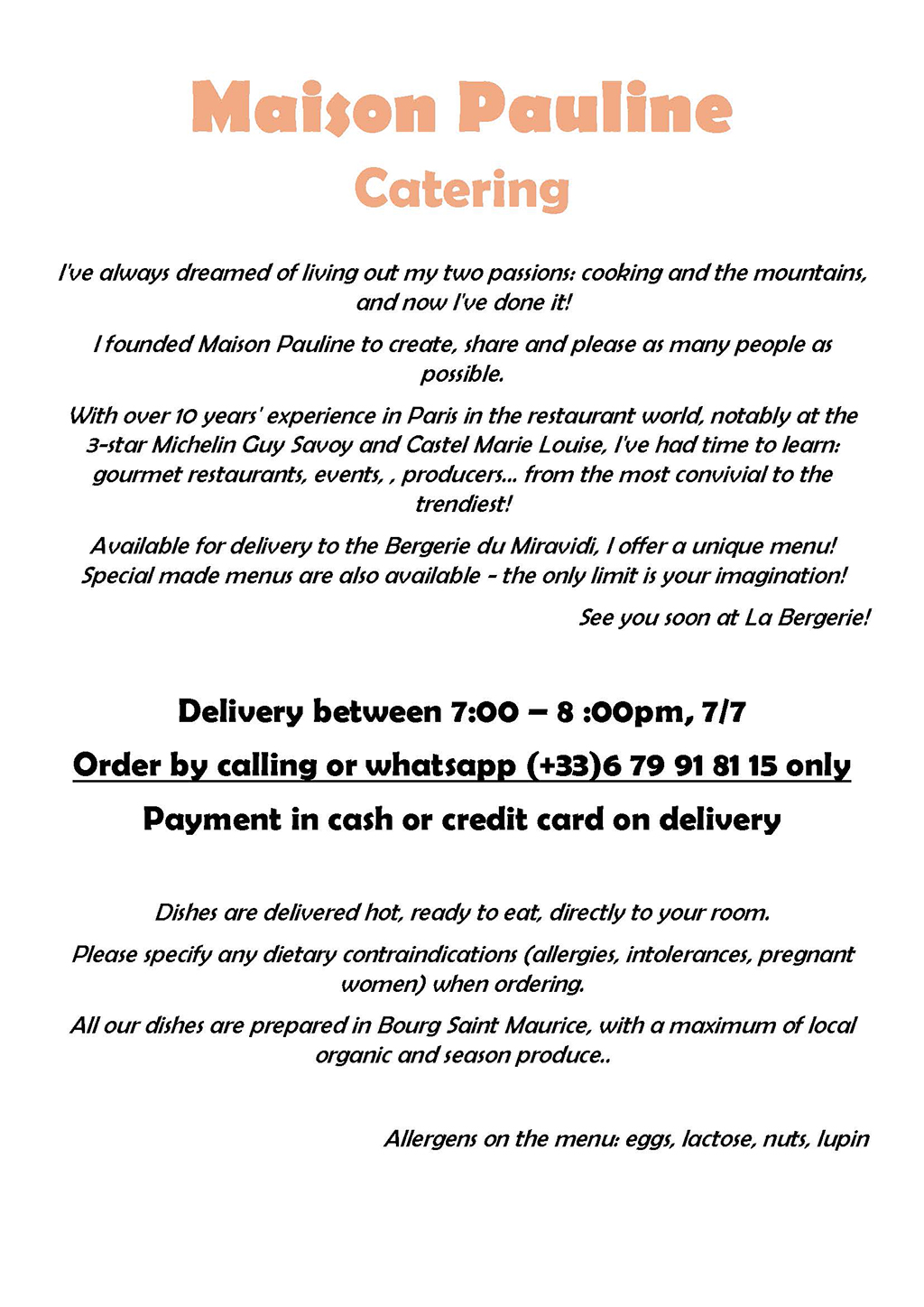 Caterer – Menus GIFT VOUCHERS TO OFFER. Contact us at: 06 23 34 75 59 every day from: 11:30 am to 9:30 pm This number does not receive text messages.